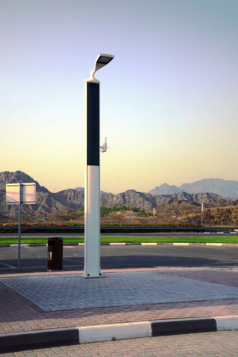 Smart solar masts installed in Hatta, United Arab Emirates, are completely autonomous Zenit and therefore not connected to the network. Solar masts Zenit power a Wifi router and an environmental monitoring center. Smart solar masts ve sensors that measure air parameters (CO2, NOx, temperature, humidity and microparticles). Beyond environmental functions, the case emits WiFi for 14 hours a day and allows isolated populations to benefit from an internet connection.